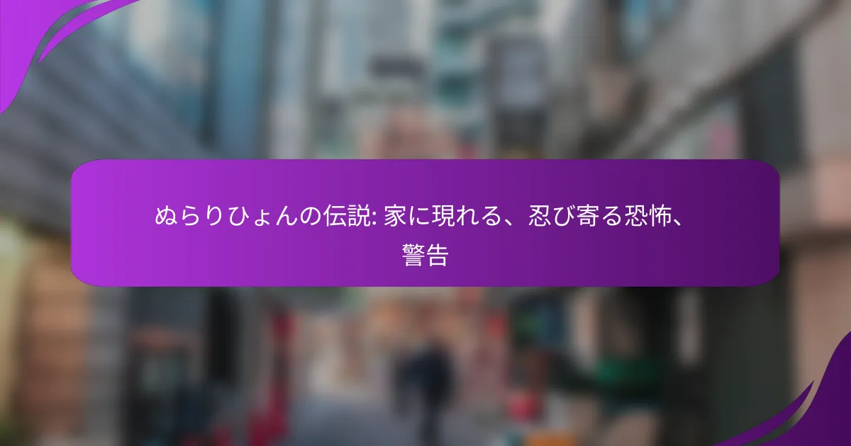 ぬらりひょんは、日本の伝説に登場する妖怪で、主に家に忍び寄る恐怖の象徴とされています。彼は人々の生活に潜む不安や脅威を具現化した存在であり、住人の気を引くことで恐怖を与えます。ぬらりひょんに対する警告は、その存在を認識し、適切な対策を講じることの重要性を示しています。
