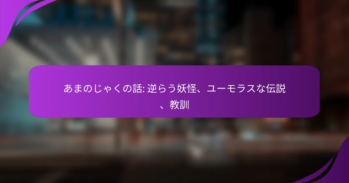 あまのじゃくは、日本の伝説に登場する逆らう妖怪で、一般的には人々に対して反発する性質を持っています。この妖怪は、ユーモラスな側面を持ちつつ、教訓を含んだ物語の中で重要な役割を果たしています。