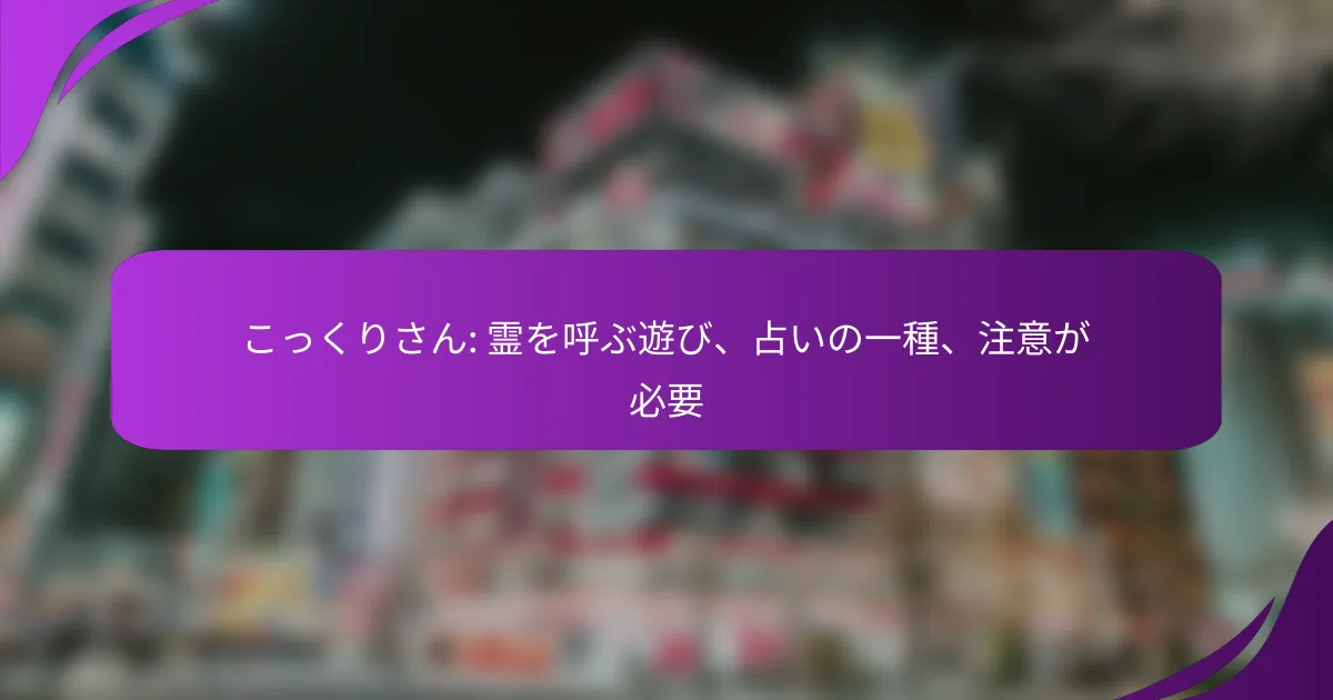 こっくりさんは、日本の伝統的な霊を呼ぶ遊びで、占いの一種として知られています。この遊びでは、参加者が霊とコミュニケーションを取ることを目的とし、特に若者の間で人気があります。