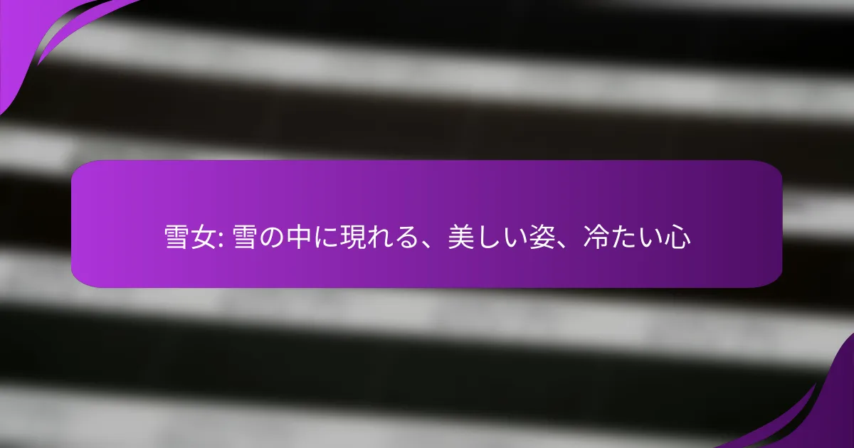 雪女は日本の民話において、神秘的で美しい存在として描かれ、しばしば冷酷な性格を持つキャラクターです。彼女は人間の感情や運命に深く関わり、物語の中で重要な役割を果たします。